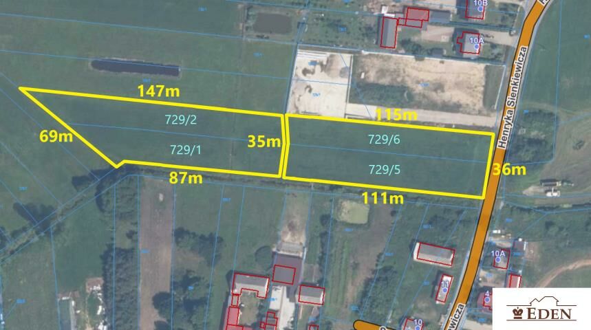 Na sprzedaż atrakcyjna działka położona przy ul. H. Sienkiewicza w miejscowości Okrzeja, gmina Krzywda, powiat łukowski.Nieruchomość składa się z czterech działek (729/1, 729/2, 729/5 i 729/6) o łącznej powierzchni 0,90 ha i wymiarach ok. 35 m x 235 m.