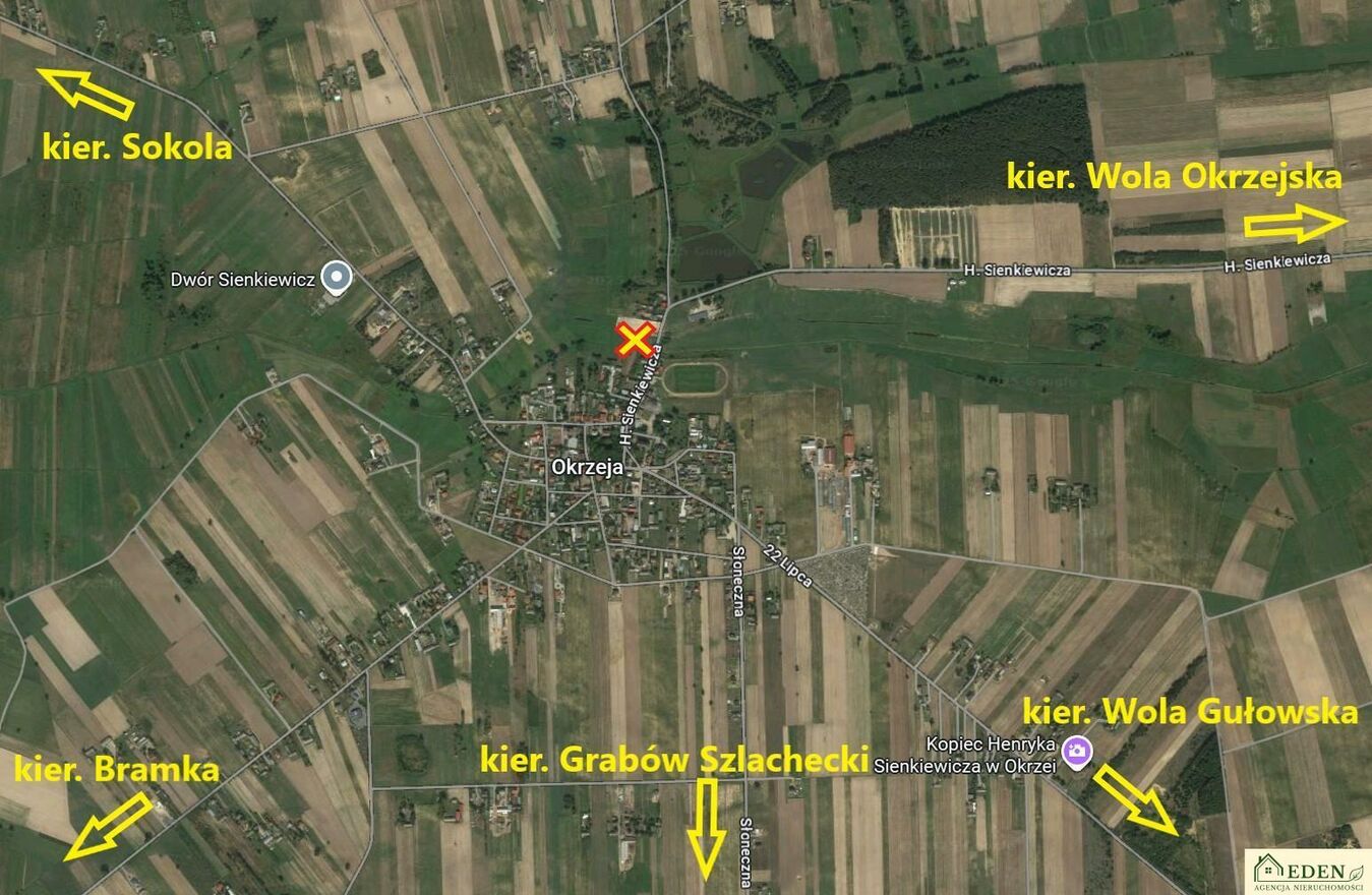 Na sprzedaż atrakcyjna działka położona przy ul. H. Sienkiewicza w miejscowości Okrzeja, gmina Krzywda, powiat łukowski.Nieruchomość składa się z czterech działek (729/1, 729/2, 729/5 i 729/6) o łącznej powierzchni 0,90 ha i wymiarach ok. 35 m x 235 m.